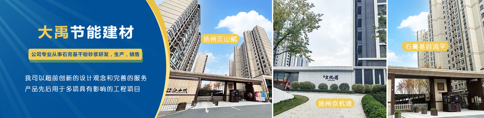 揚(yáng)州市大禹節(jié)能建材科技有限公司成立于2005年9月,位于聯(lián)合國宜居城市---江蘇省揚(yáng)州市,地處江都經(jīng)濟(jì)開發(fā)區(qū),與揚(yáng)、鎮(zhèn)、泰三市接壤,交通十分便捷。公司是專業(yè)從事石膏基干粉砂漿研發(fā),生產(chǎn),銷售一體化的綜合性科技型企業(yè),為國家標(biāo)準(zhǔn)GB/T2862-2012《抹灰石膏》的參編單位。  公司擁有國內(nèi)一流的特種砂漿生產(chǎn)線,并配有各種先進(jìn)的檢測儀器,年生產(chǎn)能力可達(dá)10萬噸。各崗位管理及技術(shù)人員齊備,對產(chǎn)品···
